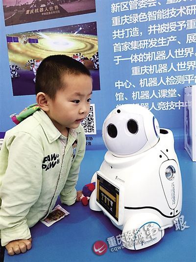 在重庆科技馆多功能厅,全球首款进入家庭,具备艺术培养、科学启蒙、品格塑造多种功能的心智发育型亲子机器人“小优”吸引了众多眼球。