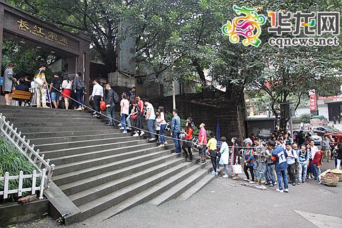 今日下午3点过,长江索道新华路站大门外排起了200余米的长队,在上新街站同样也是游客排长队乘坐。