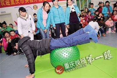 在医生指导下,同学们体验脑瘫儿重复做的康复训练。“他们每天坚持做好几遍,每遍上百次。”学生邱龄庆说,她从中懂得,每个人都有闪光点,人与人之间需要相互宽容。
