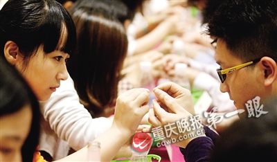 这次相亲会,受到北部新区区政府、区总工会支持,30位女嘉宾来自重医附一院、礼嘉中学、区财务局等单位。重庆晚报记者注意到,不少女嘉宾起先低着头玩手机,后来逐渐被小伙们的热情打动。