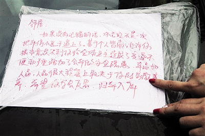 ▲小区业主在乱停车辆上粘贴告知书