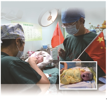 1日零点15分,南京第一个“国庆宝宝”在南京妇幼保健院诞生,孩子爸手持国旗迎接她的到来。 新华报业视觉中心记者 余萍 摄