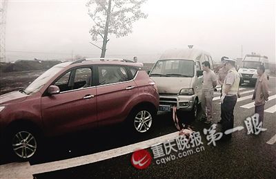 重庆晚报讯 两辆面包车一前一后,用一根宽红绳牵引着,这是在干嘛?这是前日上午发生在内环高速下道口的一幕,后车刹车失灵搬来救兵,因为躲闪其他车而又出现追尾事故。