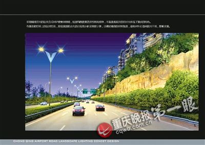 从机场到红旗河沟立交桥,灯光总体亮度将逐渐提升,渐入佳境。平均色温逐渐降低,氛围则越来越温暖热烈。同时将多采用LED等环保节能光源,代替高能耗传统光源。 重庆晚报记者 蒋海涛