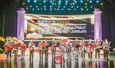 ▲14位道德模范和身边好人向全社会发出倡议,弘扬正能量,传播道德力量。