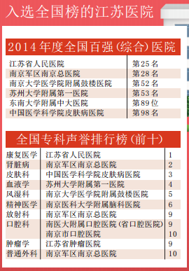 复旦大学2014年度“最佳医院排行榜”昨揭晓,江苏地区6家医院上榜