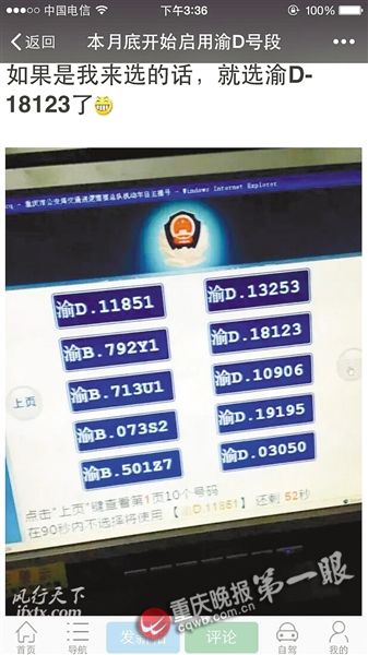 昨天下午,风行天下车友会帖子里,出现了一张网友在交管网上自主选择渝D牌照的图片。“渝D+5位数字,现在已经可以选了!”