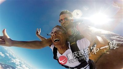 重庆七旬夫妇澳大利亚跳伞庆金婚