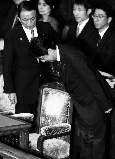 安倍鞠躬致谢参院否决问责决议案。