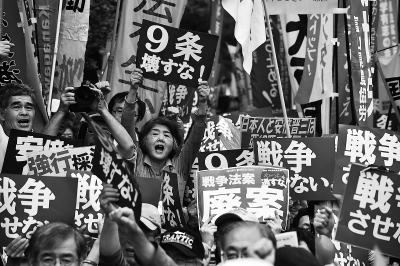一名“反安保法案妈妈之会”成员在法案表决前对记者说:“安保法案让日本可以加入外国战事,扩大战争。今天正好是9月18日,日本在中国做了残忍的事,安倍对此不仅不彻底反省,今后还要加入其他国家的侵略战争。”